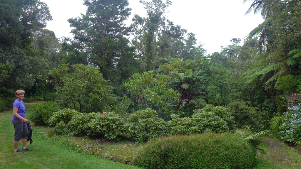Da wir vom Vortag noch ziemlich fix und alle waren, stand heute der Besuch eines der angepriesenen Gärten auf dem Programm. Wir haben uns für den Pukaiti Garten entschieden, da uns dieser als sehr ursprünglich erschien. Etwas ausserhalb von New Plymouth gelegen, war der Garten nicht so einfach zu finden. Es stand dann auch nur ein Auto auf dem Parkplatz, scheinbar gehören Gärten nicht zu den Top Attraktionen :-). Der Garten selbst ist eigentlich nicht als solcher zu bezeichnen. Das Gelände umfasst 350 Hektar (habe mich nicht verschrieben) und ist zum Großteil Regen- bzw. Urwald. Der eigentliche als Garten angelegte Teil ist mit 500 Rododendron Arten bepflanzt, die leider zurzeit nicht blühen.