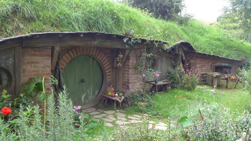 Da wir beide die Herr der Ringe Filme mehrfach gesehen haben ist Hobbiton eigentlich ein Muss für uns. Von Tauranga aus sind wir deshalb nach Matamata gefahren wo die Tour losgeht. Bei sovielen Bussen und Autos dachten wir schon das wir ohne Vorbuchung gar keinen Platz mehr bekommen aber es war dann alles halb so wild. Mit einem Reisebus ging es dann Richtung Hobbiton. Die Hobbithöhlen liegen auf dem Grundstück eines Farmers (der jetzt bestimmt ziemlich reich ist 🙂 ) und sind ohne den Bus nicht zu erreichen, da die nächste öffentlich zugängliche Strasse ca. 8km entfernt liegt. Kurz vor dem eigentlichen Eingang kam unser Guide dazu der uns viel interessantes erzählen konnte. Zum Beispiel wurden nach den Dreharbeiten der Herr der Ringe Filme die Höhlen wieder abgebaut und es waren nur noch weisse Plastiklöcher zu sehen. Trotzdem sind schon jeden Tag jede Menge Touristen gekommen. Bedingung des Farmer für weitere Dreharbeiten, nämlich der Hobbit, war dann, das alles aus beständigen Materialien gebaut werden muss, damit die Höhlen für lange Zeit zu besichtigen sind.