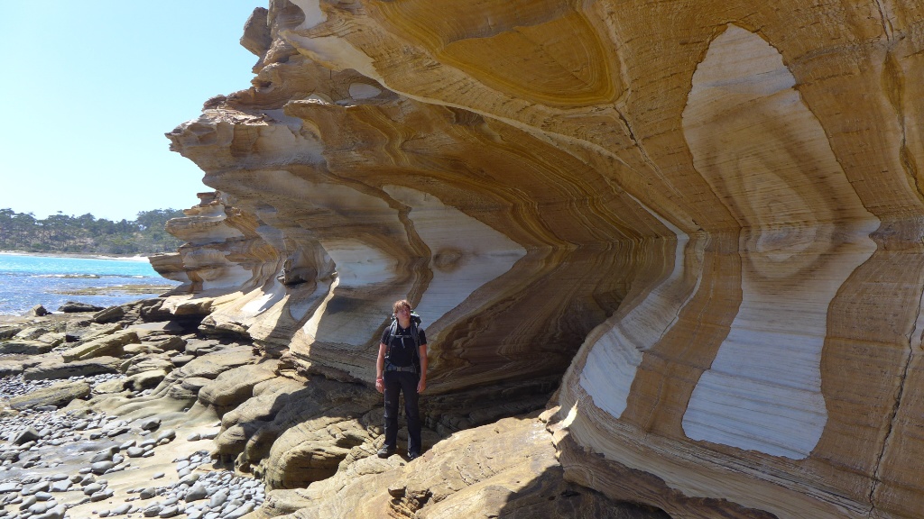 Am gleichen Tag ging es noch auf, zu einer kleinen Wanderung zu den sogenannten „Painted Cliffs“, die man am besten bei Ebbe erreicht. Die Wanderung selber war einfach und unspektakulär aber das Ziel dafür atemberaubend. Hier zeigt sich das die Natur doch der grösste Künstler ist. Sandstein mit verschiedenen Einlagerungen, wie z.B. Eisen, wurde nach und nach vom Meer und den Gezeiten ausgewaschen und zurück blieben Klippen in den verschiedensten Farbtönen, jede einzigartig und mit einem anderen Muster.