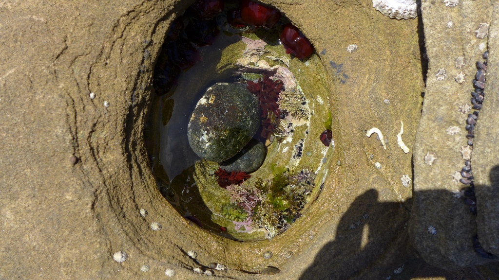 Außerdem haben sich hier kleine natürliche Pools gebildet in denen das Wasser bei Ebbe stehen bleibt und in der sich eine ganz eigene Flora gebildet hat. Da das Wasser hier so klar ist hat man das Gefühl man guckt in ein Aquarium.
