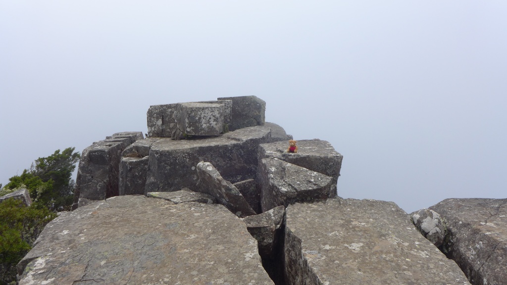 Auf dem Gipfel von Bishop & Clerk und Sicht gleich Null